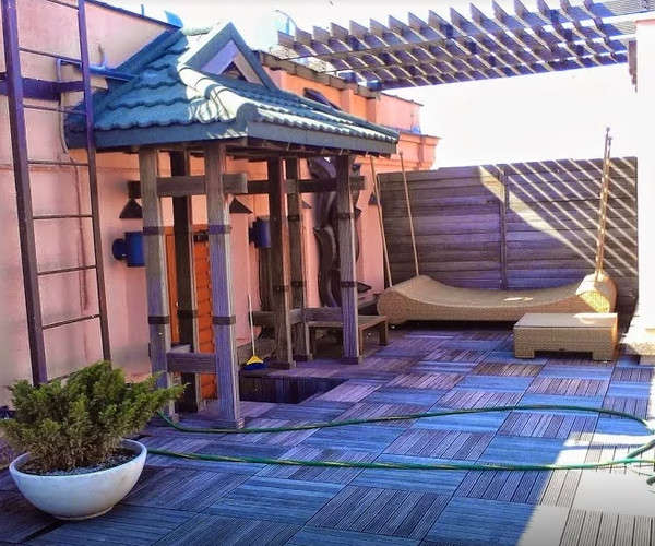 Как сообщает издание dengi.ua, в квартире две гостиные, три спальни, четыре гардеробные комнаты, библиотека. На террасе установлена пергола и автоматический маркиз. Также здесь имеется клумба, кадки с деревьями, разнообразные скульптуры.