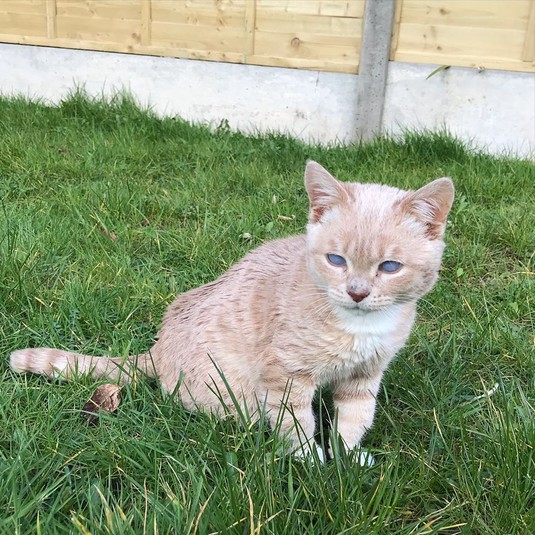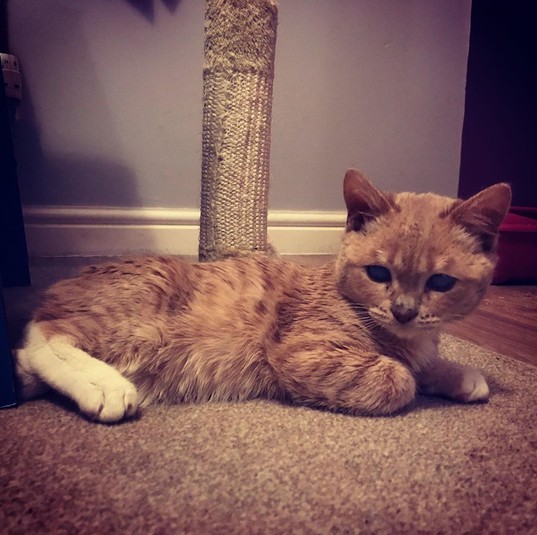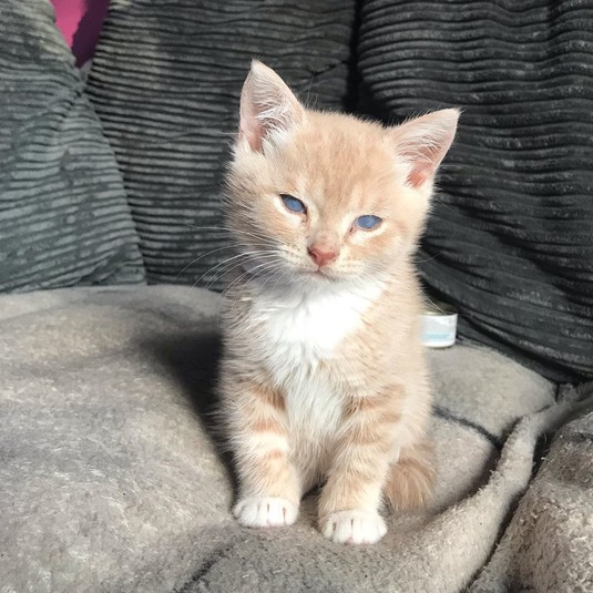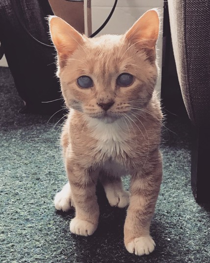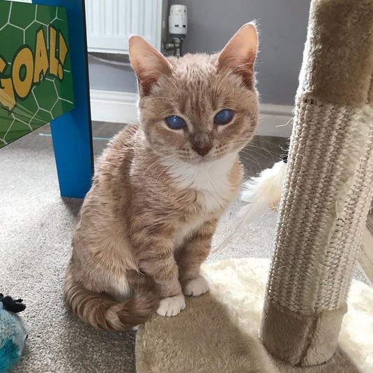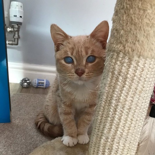 В сентябре 2019 котенок был доставлен в ветеринарную клинику в Вулверхэмптоне, где работает его нынешняя хозяйка, 29-летняя Эмили Томлинсон. Девушка считает, что предыдущая семья отказалась от него из-за мутных глаз, появившихся в результате двустороннего отека роговицы, хотя это никак не мешает зрению кота.