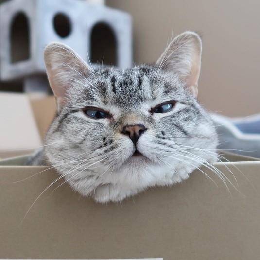 Кошка - сиамский микс с табби, ей семь лет. Родилась Нала в «многодетной семье», потом попала в приют, откуда ее забрали домой.