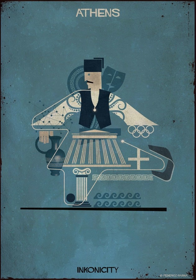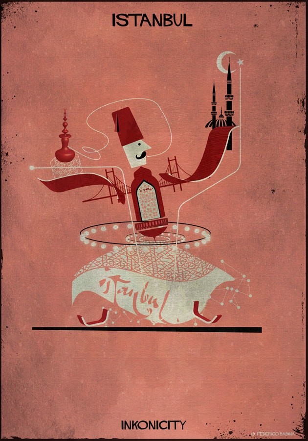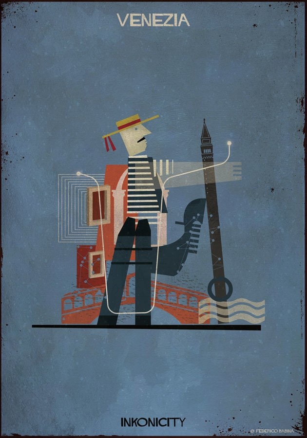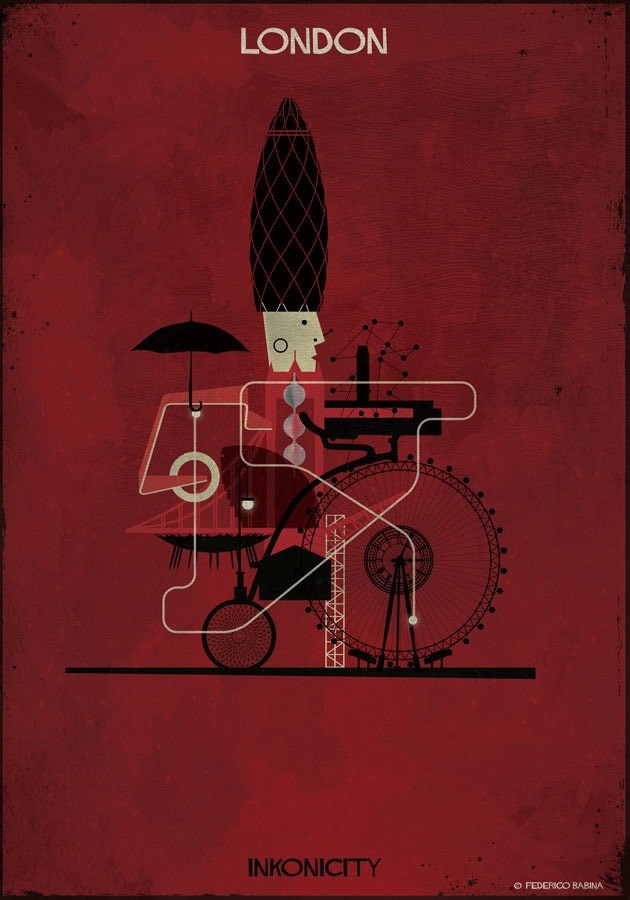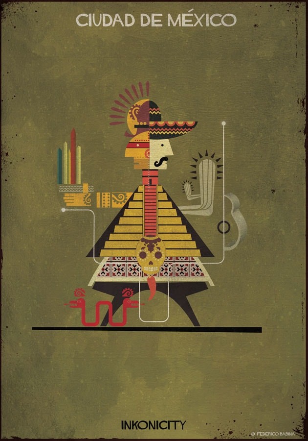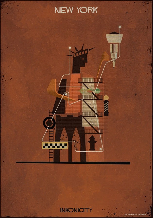 На своем сайте Федерико опубликовал новый проект Inconicity, в котором изобразил логотипы городов мира, собрав воедино в одной картинке элементы культуры и традиций.