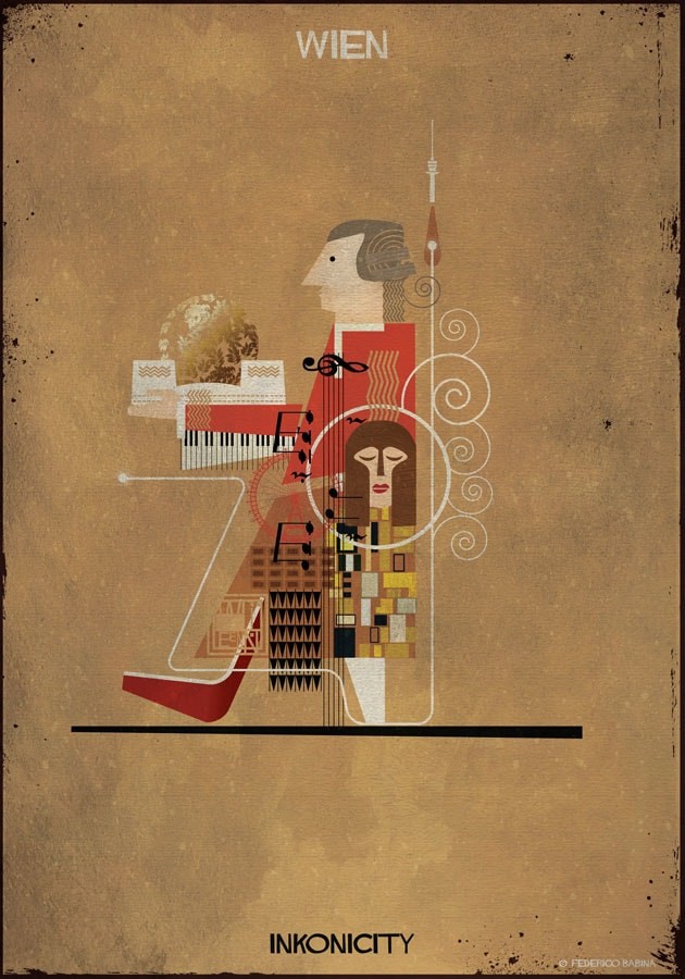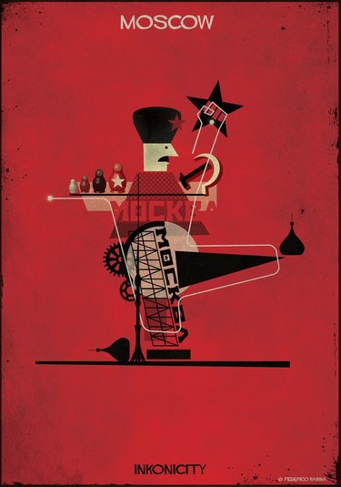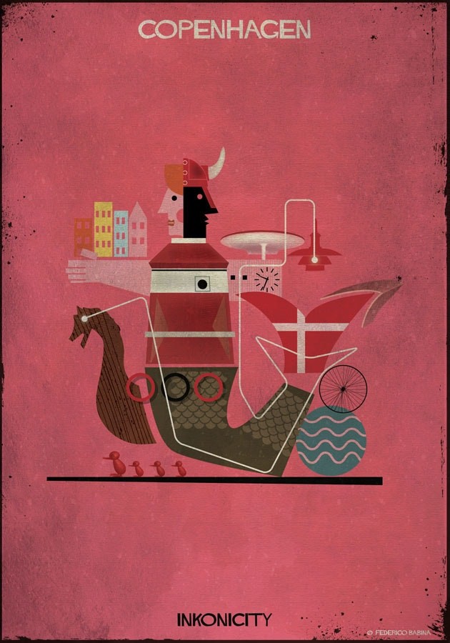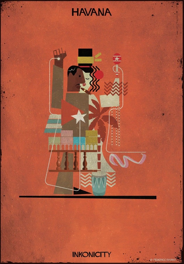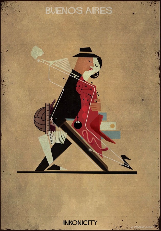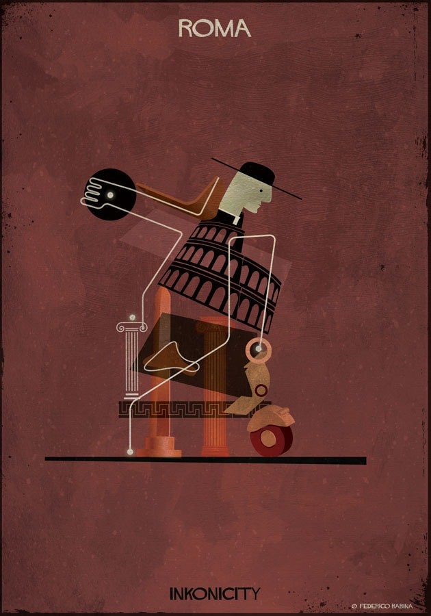 На своем сайте Федерико опубликовал новый проект Inconicity, в котором изобразил логотипы городов мира, собрав воедино в одной картинке элементы культуры и традиций.