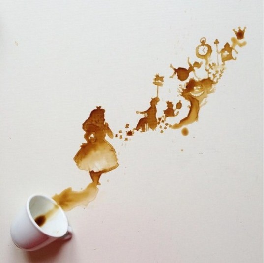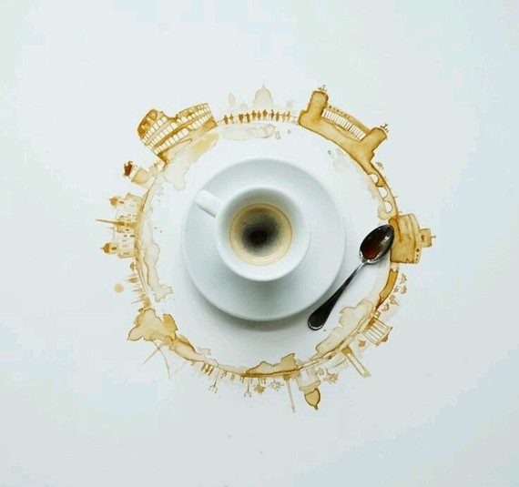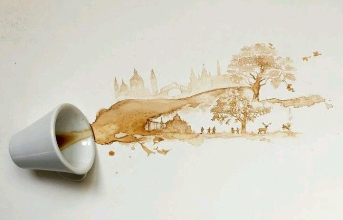 Именно так поступает современный художник Джулия Бернарделли (Giulia Bernardelli). Используя вместо холста, красок и кисти любимый многими напиток она создаёт замечательные работы, которые выкладывает в Instagram.