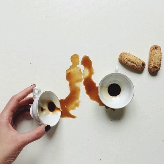 Если вы нечаянно опрокинули чашку с кофе, не огорчайтесь. И прежде чем вытереть стол, подумайте, может быть, блюдце, чайная ложка, печенье, кубик сахара или просто палец как нельзя лучше подойдут для создания маленького, пусть и недолговечного шедевра.