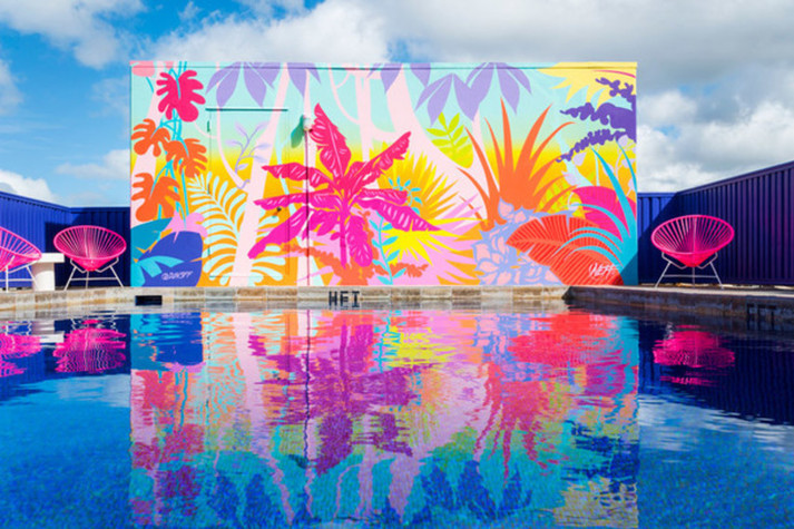 На крыше отеля располагается небольшой бассейн, а тропическая стена рядом с ним расписана известным калифорнийским художником Dj Neff. В лаундж-зоне на первом этаже ночью включается неоновая подсветка, напоминающая яркий летний закат, и то же самое происходит с коридорами отеля в вечернее время.