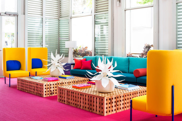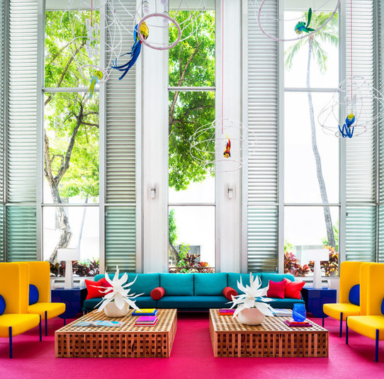Интерьером отеля занималась американская студия BHDM Design во главе с известным дизайнером Дэном Маццарини. Уже при входе в отель гости погружаются в буйство красок, где легко можно найти все цвета радуги в удивительной гармонии между собой. Высокие потолки и огромные окна лобби отеля пропускают в помещение много света. Цветные коридоры и тропические обои подчеркивают, что вы оказались не где-нибудь, а на жарком и гостеприимном курорте.