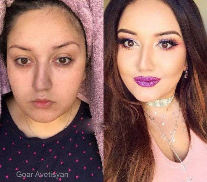 Предлагаем вашему вниманию несколько примеров невероятных преображений, в которых заслуга макияжа.