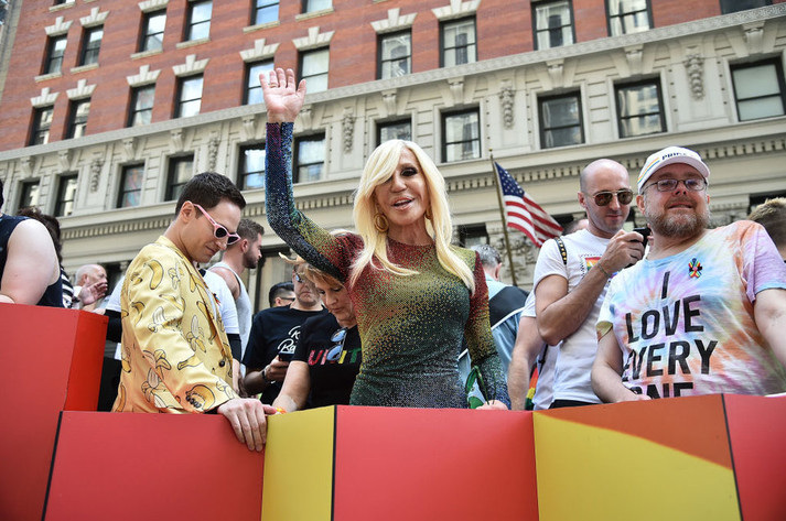 В день парада 30 июня Донателла Версаче появилась на параде в усыпанном кристаллами авторском наряде.