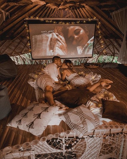 Даша также опубликвала уютное фото с любимым. Пара целуется под фильм, который идет на большом натяжном экране.