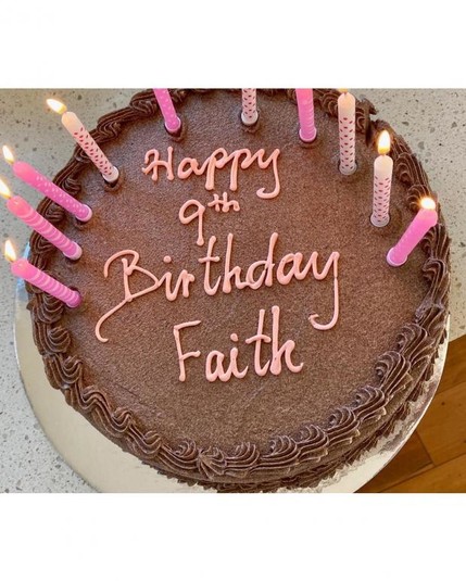 На втором фото можно увидеть праздничный торт со свечами и надписью «С 9-м днем рождения, Фэйт».