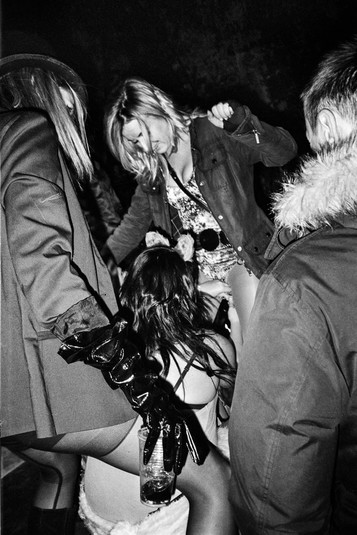 Со многими людьми на фотографиях Райстер не знаком. Некоторые из них – друзья фотографа. Череда кадров показывает ночной город с разных сторон – это частные вечеринки, посиделки на заднем дворе или в полуночных закусочных, танцы в стриптиз-барах, люди в метро, случайные прохожие, акты публичного эксгибиционизма, зернистые силуэты в окнах, лебеди на пруду. Всё это ночной Берлин, каким его нам показывает Кристиан Райстер.