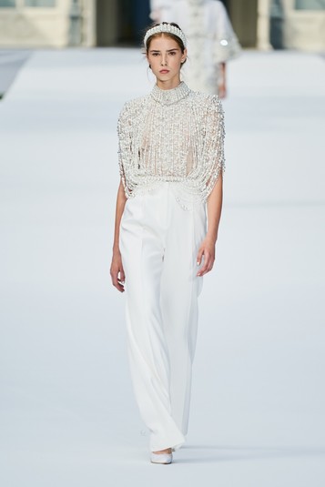 Шоу началось пеленой белоснежных нарядов, которые отсылали к образам легендарных героинь эпохи джаза.