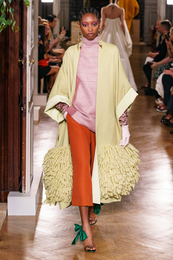 «Сегодня важно мечтать о мире без границ, где каждый может прожить свой собственный путь», – сказал Пиччоли. Эта мечта пронизывала бесчисленное множество образов: от усыпанных декоров вечерних ансамблей (с бахромой, вышитыми плащами из бархата, крепа и ламе) и богатых дневных (невероятное темно-синее кашемировое цветочное пальто с интарсией) до истинно царственных (кашемировые платья цвета слоновой кости с деталями оттенка металлик).