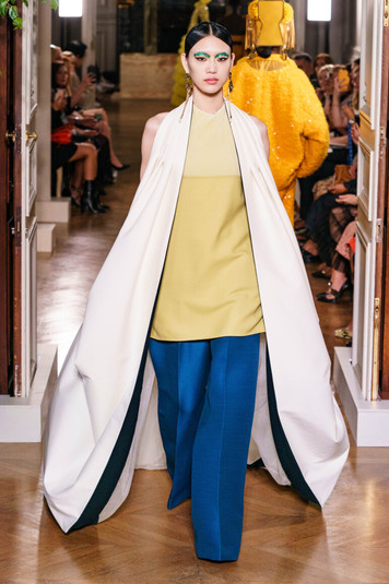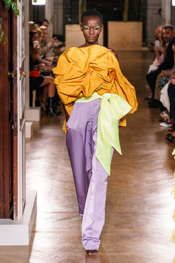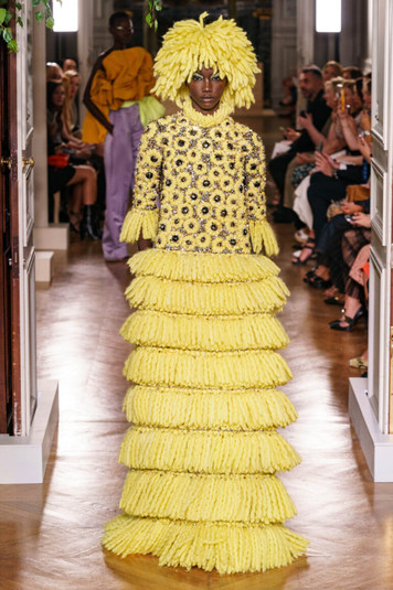 Требуется немалый запас сил и креативности, чтобы наполнить подиум столь яркими цветными сочетаниями и самыми демонстративными силуэтами. Эта коллекция излучала дерзость и смелость – начиная с канареечно-желтого ансамбля, открывающего шоу.