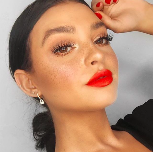 Неизменная классика жанра - красные губы. Такой образ подходит для любого мероприятия, оставаясь одновременно элегантным и кокетливым.