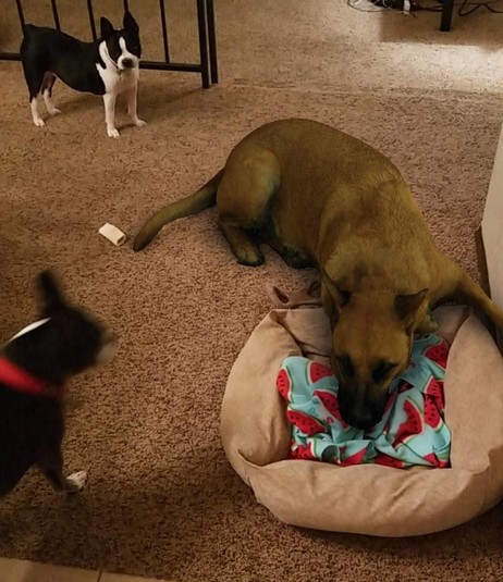 Сначала девушка сообщила, что собака якобы крутилась около их дома и зашла в коридор. А потом песель уже разлегся на кровати.