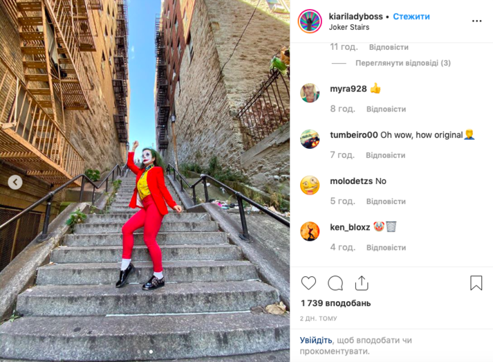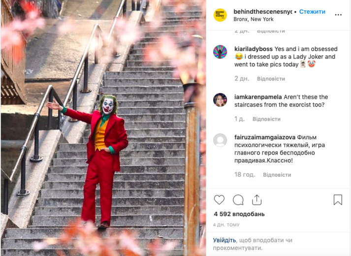 А последнее веяние среди пользователей соцсетей отсылает к ключевой сцене в фильме — танце Джокера на лестнице возле его квартиры.