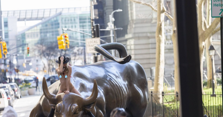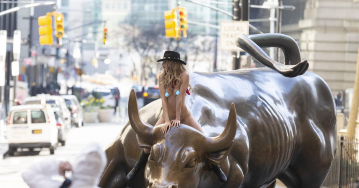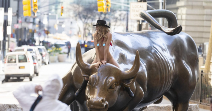Обнаженная девушка оседлала знаменитого быка на Уолл-Стрит: откровенные фото