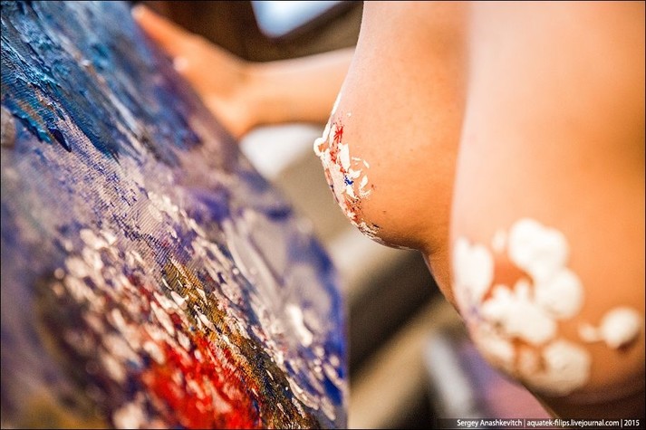 Обнаженная живопись: невероятные картины нарисованные грудью