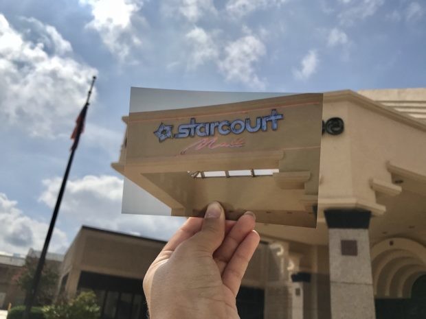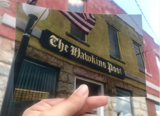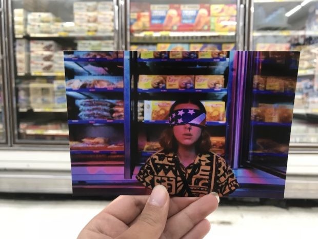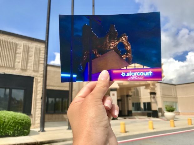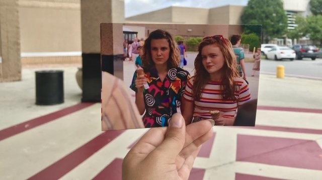 Олли Мэй и Джастин Спарапані проехали к Джорджии и взялись за поиски магазинов, улиц, школы Хоакінса и именно того торгового центра Старкорт, которые постоянно показывали в сериала. Для усиления эффекта они напечатали кадры из «Очень странных дел» и сделали фото на всех местах.
