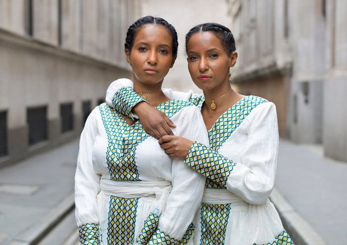 Создавая эту серию портретов, он узнавал истории своих моделей. Монозиготные близнецы Полли и Софи, имеющие одинаковый генотип и почти идентичные отпечатки пальцев, могут открывать смартфоны друг дружки, а Хермом и Херода, переехавшие в Лондон из Эритреи 30 лет назад, оглохли одновременно в семилетнем возрасте.