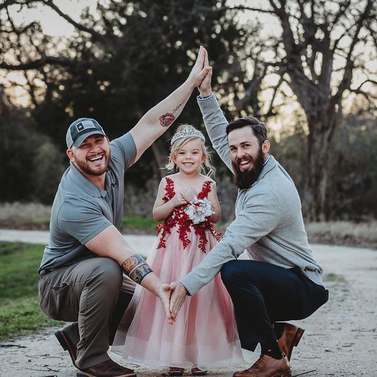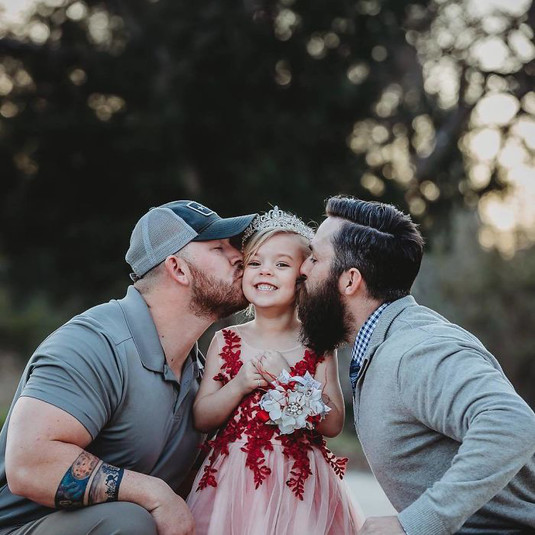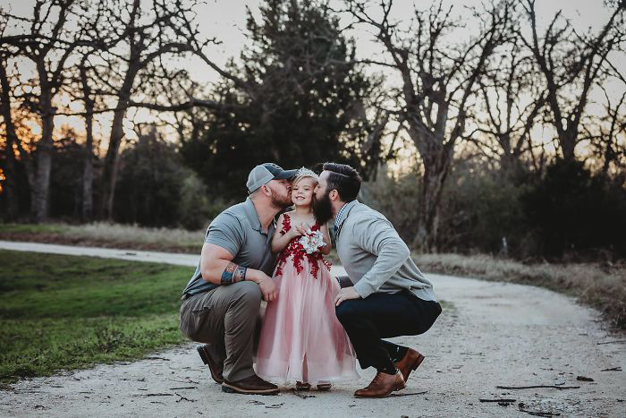 На фотографии можно увидеть двух мужчин, целующих маленькую девочку в бальном платье принцессы. И несмотря на то, что фотографии подписаны как «Наша дочь Уиллоу», речь здесь идет не о гей-паре.