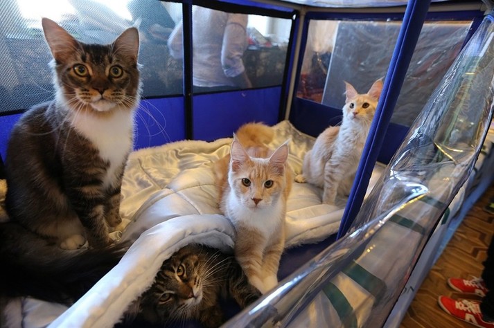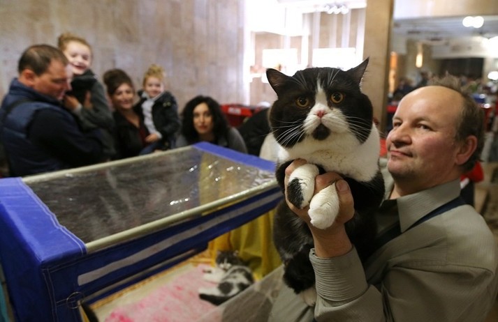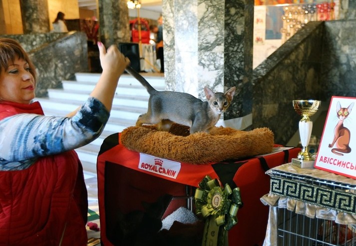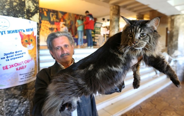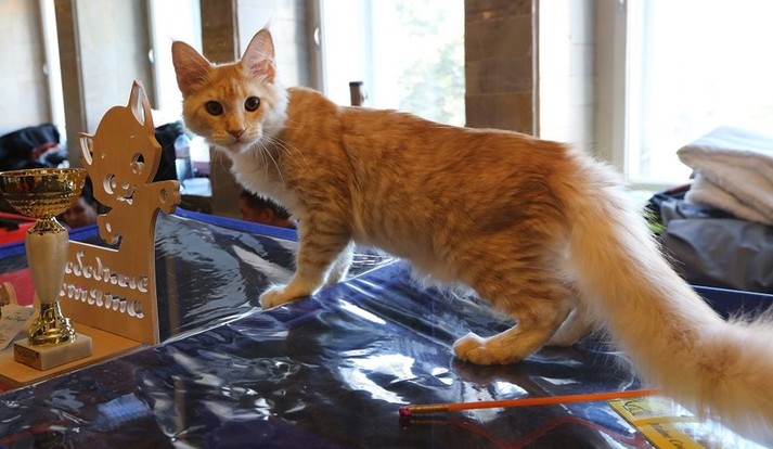 Главной звездой мероприятия стал огромный мейн-кун по кличке Фигаруша. Вес кота-еврочемпиона составляет 15 килограммов (при стандарте около 6-8 кг), длина - больше метра.