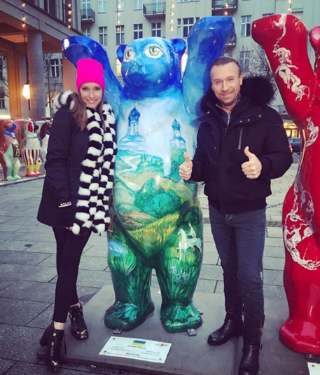 Фото показывают, как Винник с Осадчей побывали на рождественской ярмарке, в баре, а также рядом с символом Берлина – медведем. Кстати на последнем были нарисованы пейзажи Киева.