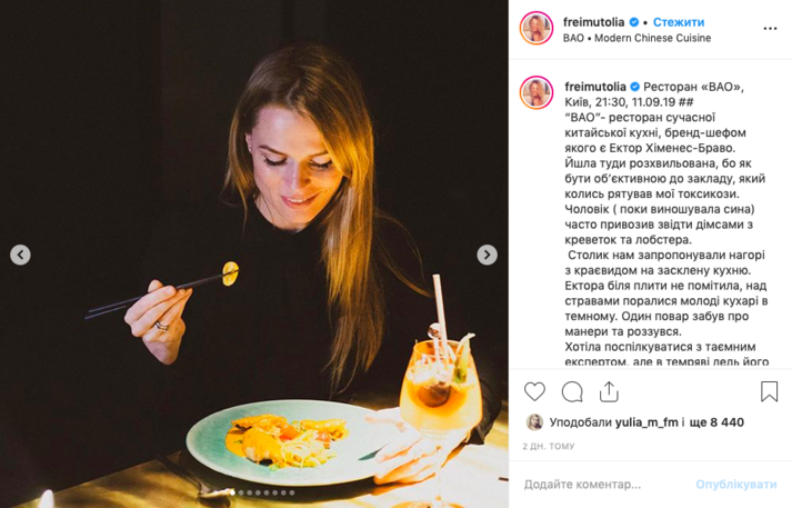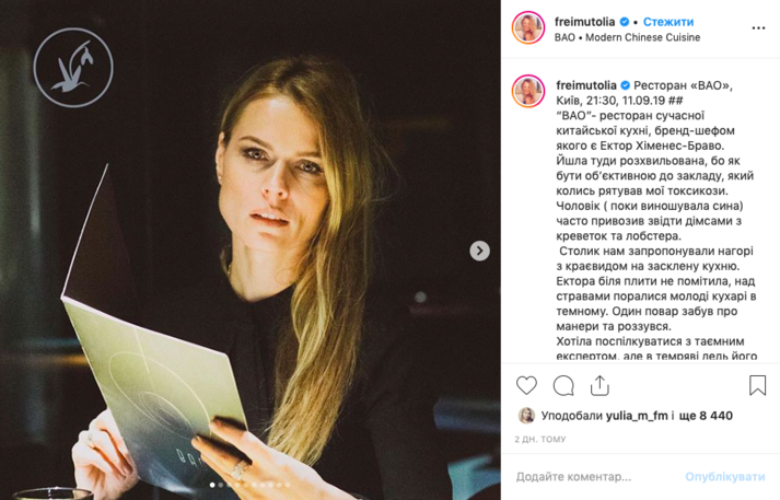 Ольга Фреймут раскритиковала ресторан Николая Тищенко