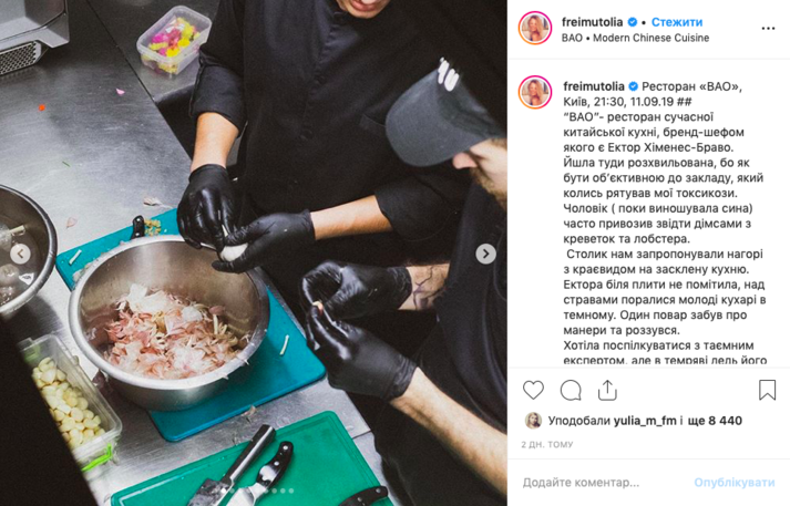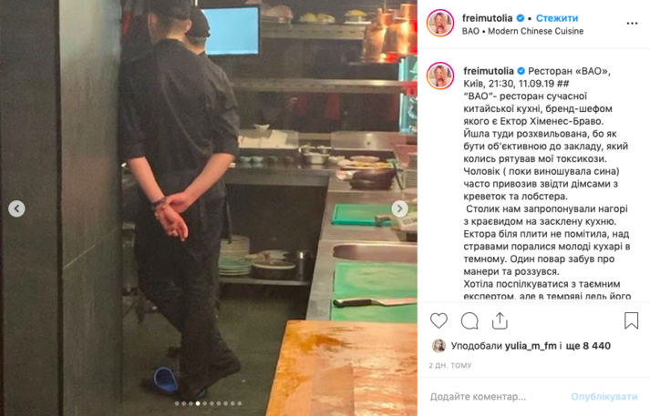 После тщательного исследования ресторана Николая Тищенко «Три вилки» журналистка провела ревизию в ресторане «ВАО», владельцем которого является судья шоу «Мастершеф» Эктор Хименес-Браво.