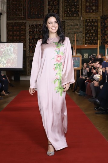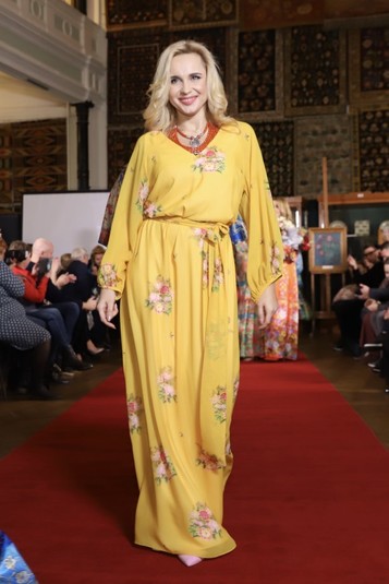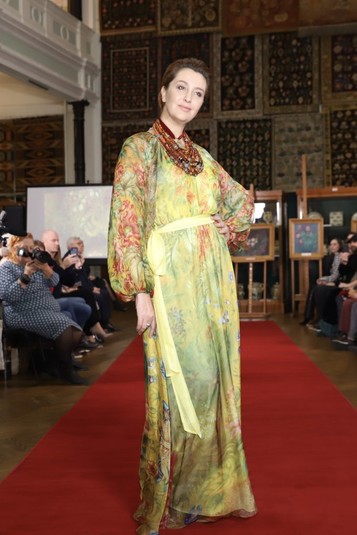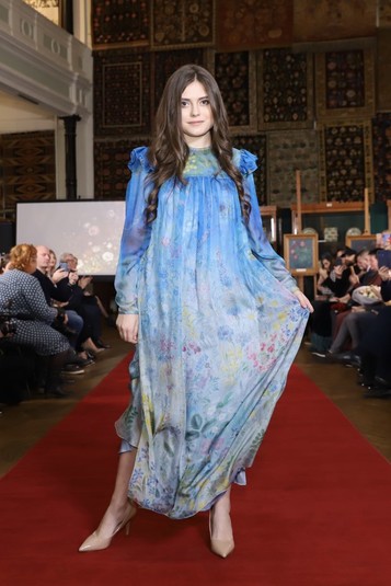 В первой коллекции актриса представила роскошные платья из шелка авторскими цветочными принтами. А показ прошел в Национальном музее украинского народного декоративного искусства.