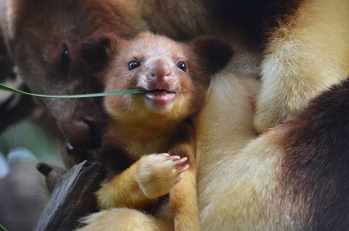 Будучи редкой жемчужиной Океании, древесные кенгуру привлекают к себе внимание, как настоящие знаменитости. В июне прошлого года в зоопарке Перта появился на свет первый детёныш древесного кенгуру, родившийся в неволе за последние 36 лет, дав надежду на выживание вида. Взгляните, какие они очаровательные!