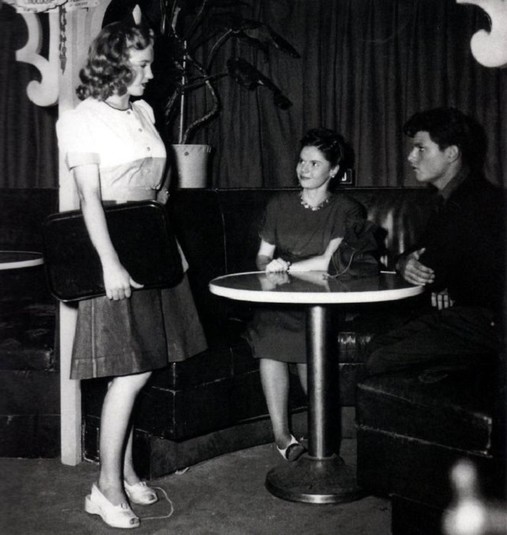 Она появилась в эпизоде как официантка Эви. На этих редких фотографиях Монро запечатлена в сценах фильма «Опасные годы» и во время актерских уроков с Хеленой Сорэлл, которая готовила ее к роли.