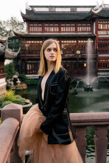 Кроме того, fashion-съемка была дополнена атмосферными снимками на фоне старинных шанхайских улочек и кадрами огней ночного города.