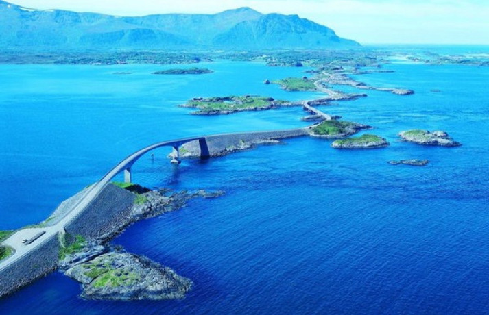 Еще одной интересной для исследования является атлантическая дорога в Норвегии. Трасса соединяет несколько небольших прибрежных поселений, предназначена специально для туристов, потому что виды с нее открываются просто нереально красивые.