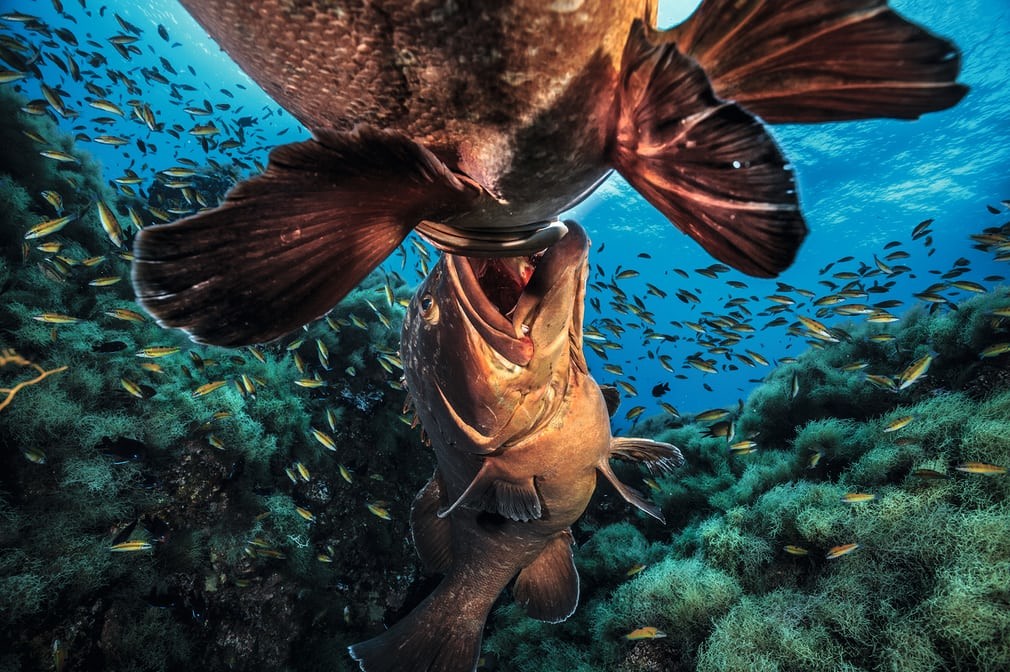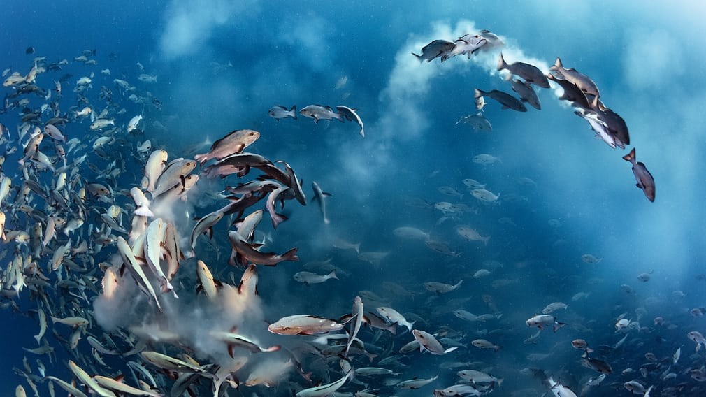 А на фото «Красота гендерных сгибов» Александра Мустарда пойман момент экстаза за несколько секунд до нереста. Самец сдерживает свои грудные плавники, чтобы создать соответствующее течение, которое поможет яйцам попасть в него, когда он будет выпускать свою сперму.
