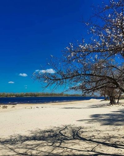 На одном из пляжей набережной линии Днепра в Черкассах зацвели деревья. Фото удивительной природы появились на Facebook-группе «Настоящин Черкассы».