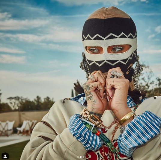 Известная американская певица и актриса Рианна приняла участие в фестивале Coachella, выбрав для этого мероприятия неожиданный наряд. Артистка надела стильную балаклаву, украшенную орнаментами. Несколько снимков в этом кричащем образе она выложила на своей странице в Іnstagram, пишет «Главком».