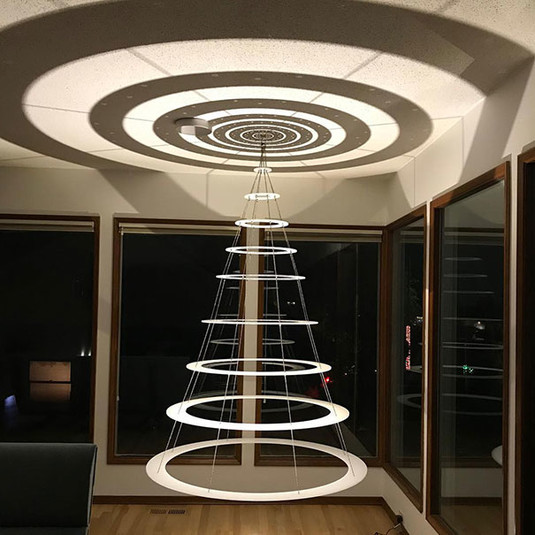 Один из вариантов - воздушная елка из новогодних шаров. Эта елка тоже не займет много места в квартире, но ее создание потребует немного терпения. Для воплощения идеи в жизнь необходимо подвесить шары на леску разной длины и закрепить под потолком.