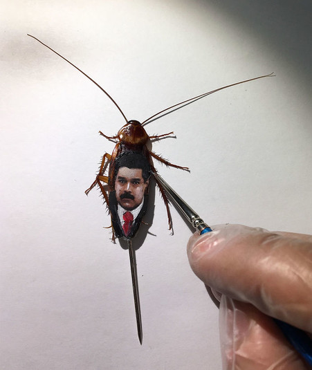 Мексиканский художник Кристиам Рамос рисует портреты исторических личностей на тараканах. Одна из последних его работ – изображение президента США Дональда Трампа.