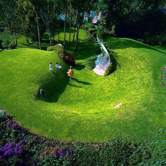 Архитектор Javier Senosiain придумал необычную дом-землянку в Мексике, которая имеет два овальных широкие крылья, в которых можно найти все, что необходимо людям: гостиную, столовую, спальни, гардеробную и ванную комнаты.