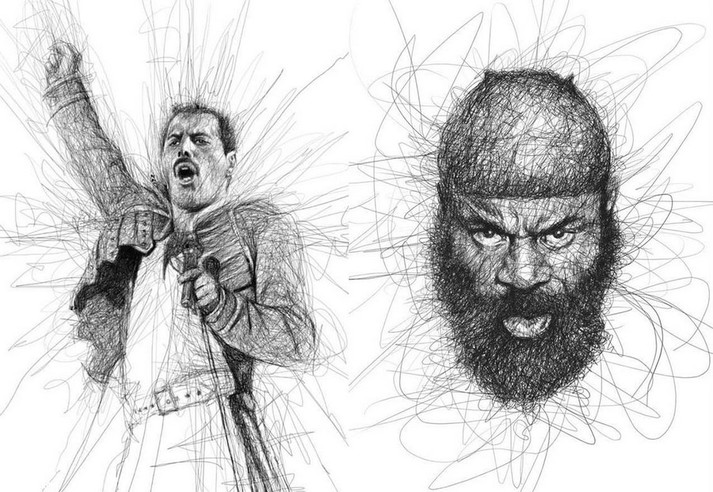 Ручкой на бумаге он с большой точностью передаёт выражения лиц и эмоции голливудских звёзд, певцов, учёных и киноперсонажей.