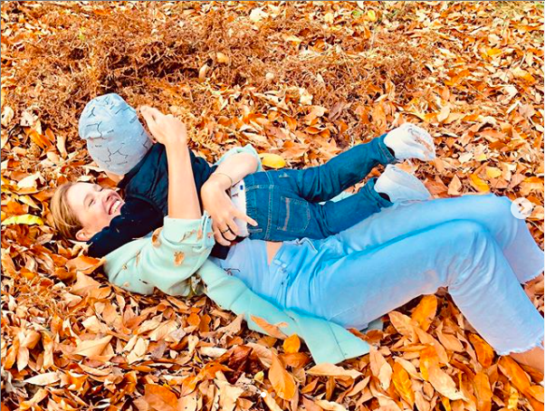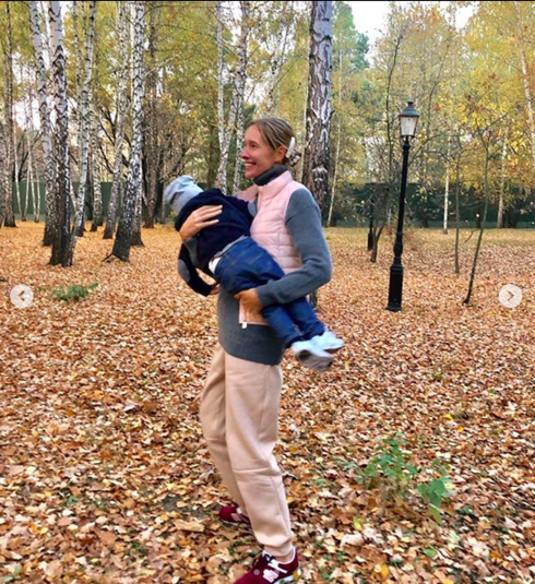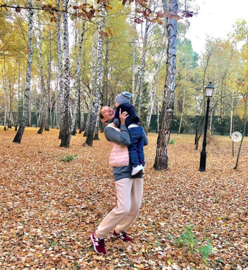 «Осенних радостей не бывает много», — добавила она в подписи к другим фото, на которых ведущая кружит своего сына на руках в парке.