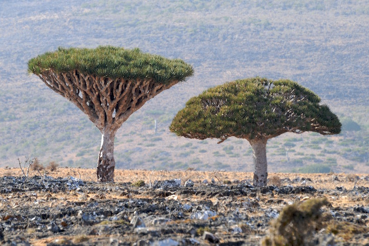 Сокотра известен своей уникальной флорой и фауной: фактически 30% произрастающих на острове растений, например, огуречное дерево и драцена киноварно-красная, вы не встретите больше нигде в мире.