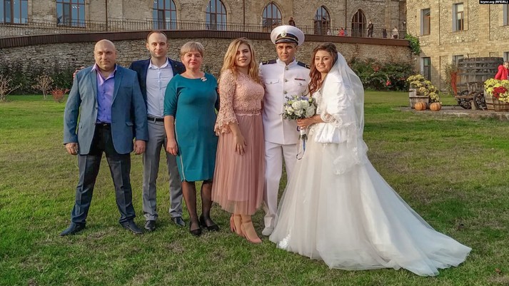 Шафером на свадьбе стал освобожденный моряк Михаил Власюк, а подружкой невесты — сестра другого моряка Владислава Костишина Елена.
