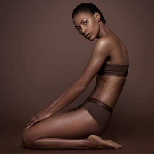 В палитре Честерфилда - все оттенки от темного шоколада до нежного персика. Модели позировали на фоне, который выгодно подчеркивал их оттенок кожи, кроме того, мастерски было подобрано и нижнее белье, чтобы не нарушить цветовую гармонию.