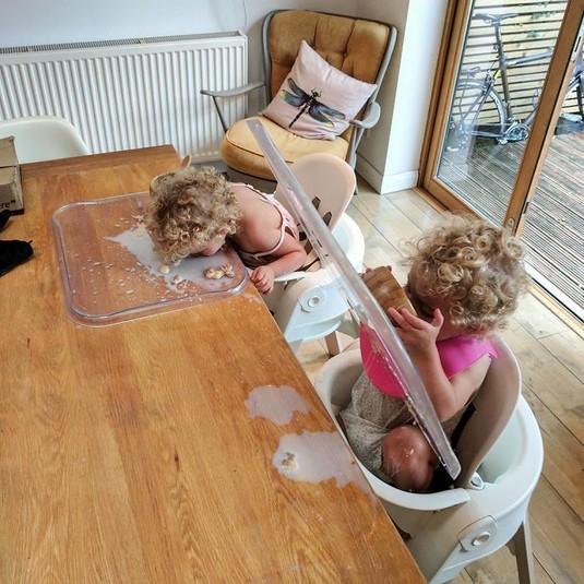 Зато близняшки каждый день поражают своего папу тем, какой разный подход у них для решения проблем. Если одна уныло скребет ложкой по дну тарелки с мюслями и молоком, то другая заливает содержимое своей чашки, подняв ее над головой.