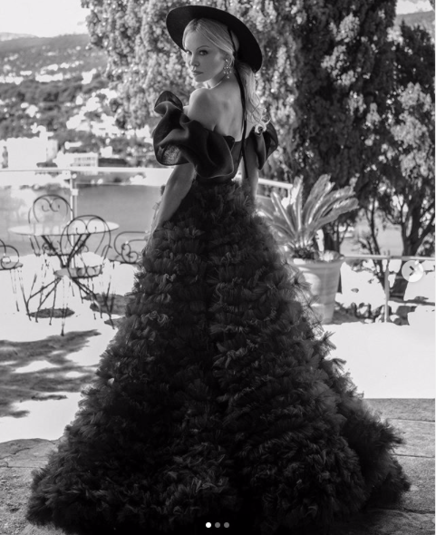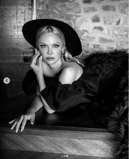 На снимках Андерсон блеснула неувядающей красотой и стройными формами в роскошном вечернем образе и шляпе, а также в платье с дерзким вырезом.
