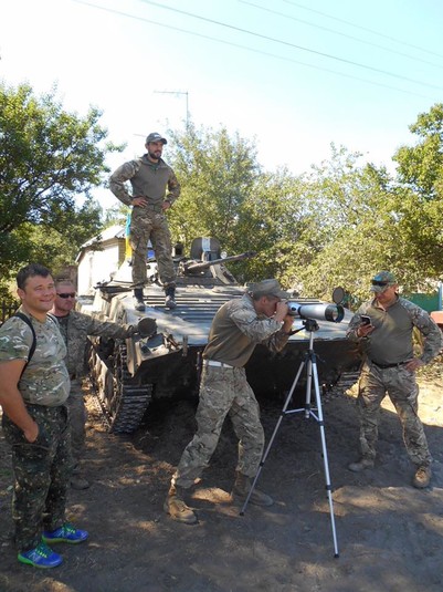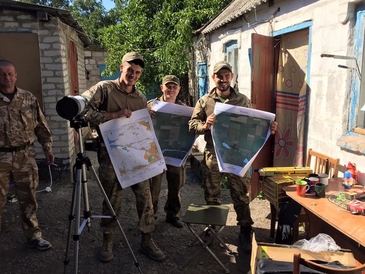 Снимки были сделаны во время его поездки в Пески в Донбасс. В публикации говорилось о доставке украинским военным спецтехники, специальных карт и продуктов.