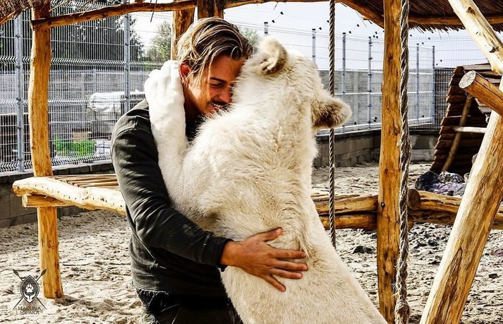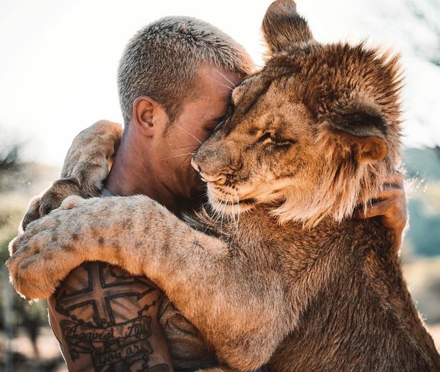 Один из главных героев видео — лев Декстер. Сейчас сложно поверить, что этот активный крепкий лев весом более 80 кг когда-то был слабым детенышем, который не знал жизни вне клетки и страдал от множества паразитов. К счастью, Дин спас львенка от заводчиков и его выходили в заповеднике.