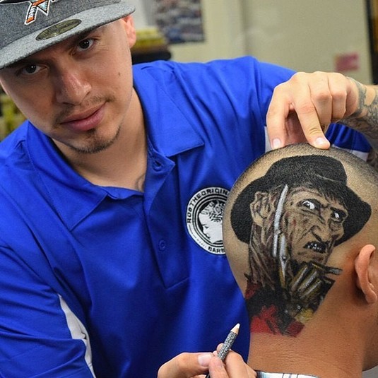 Стрижка у американца Роба Феррелла не похожа ни на что другое: он «рисует» на головах клиентов логотипы, картинки, узоры и даже лица знаменитостей.